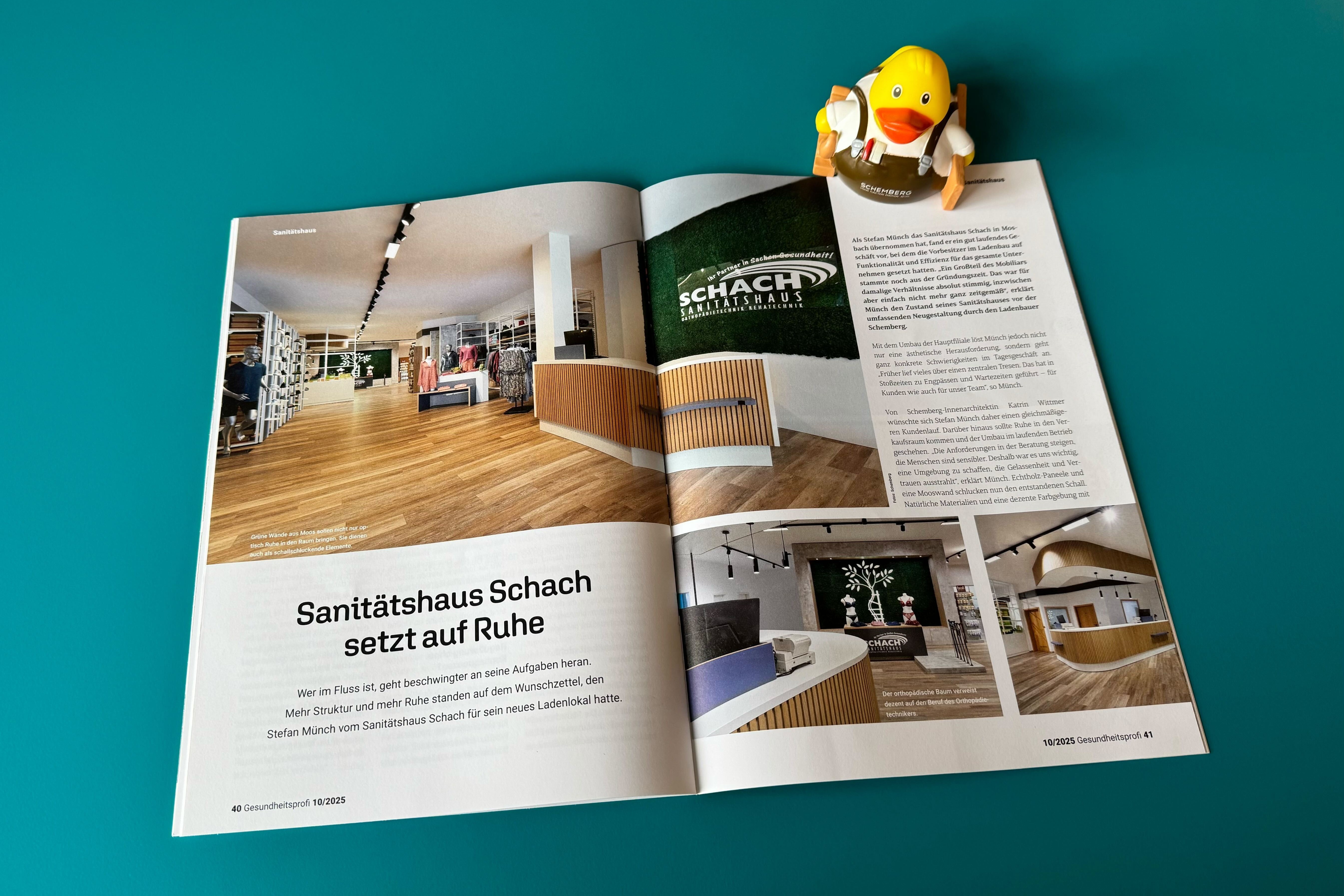 In der aktuellen Ausgabe der Fachzeitschrift GP Gesundheitsprofi wird das Sanitätshaus Schach ausführlich vorgestellt. Hier steht besonders das durchdachte Store-Konzept im Mittelpunkt: Von der Wirkung der verschiedenen Designelemente bis hin zu den positiven Veränderungen im Arbeitsalltag, die optimierten Abläufe und die entspannte Atmosphäre kommen sowohl Kundinnen und Kunden als auch dem Team zugute.